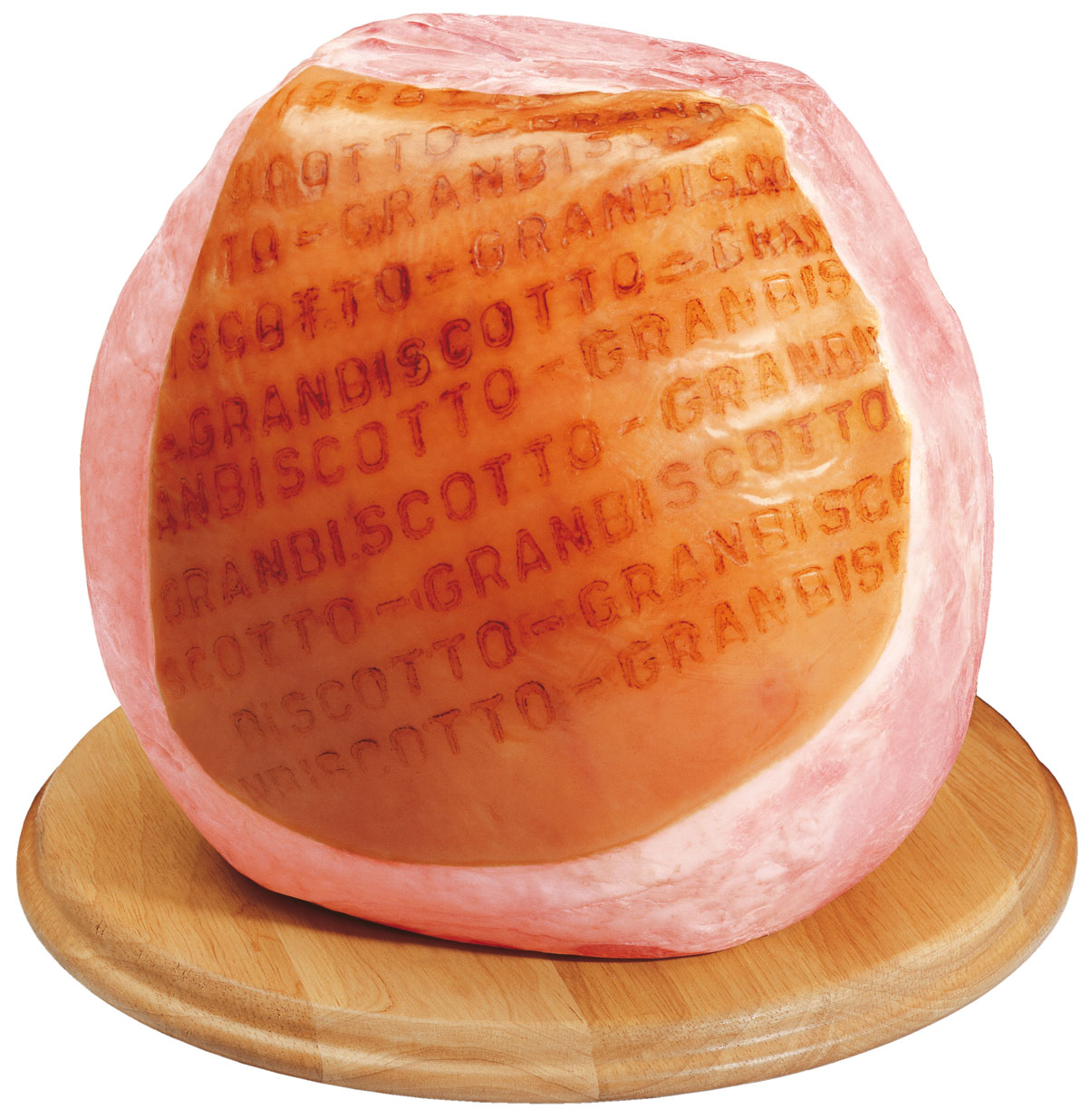 Rovagnati Grandiscotto ham on a wooden board. A unique tasting experience.
