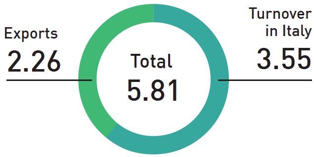 Organic market data at SANA: Exports 2.26, Turnover in Italy 3.55, Total 5.81.