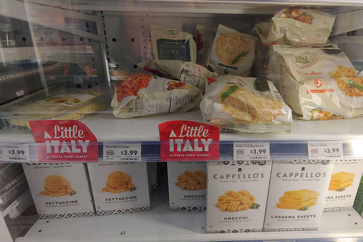 Whole Foods Market’s Little Italy section with Cappello’s grain-free gnocchi, fettuccine, and lasagna sheets. Italian pasta. © All rights reserved