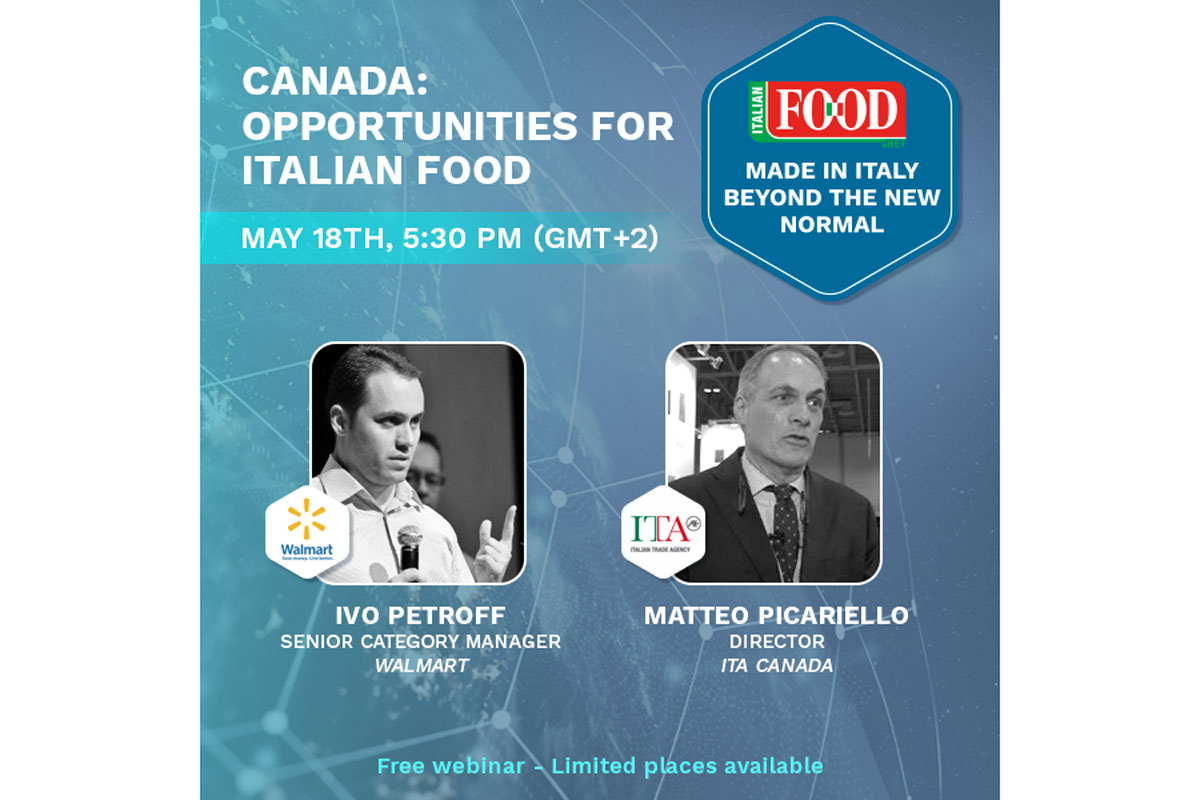 Canada: Opportunities for Italian Food webinar featuring speakers from Walmart and ITA Canada on May 18th.